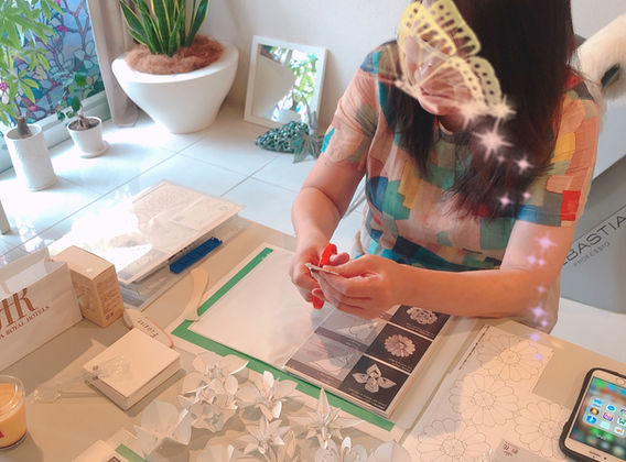折花講座は、ワークショップとは異なり、折花を一枚の紙からカットして折って作り上げるまでの全ての工程を楽しんでいただける内容となっております。